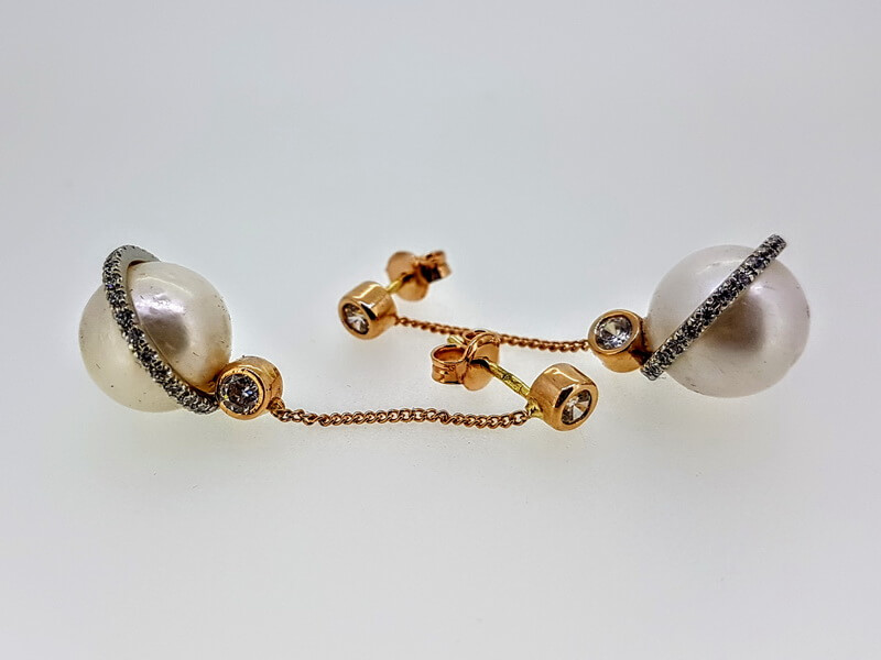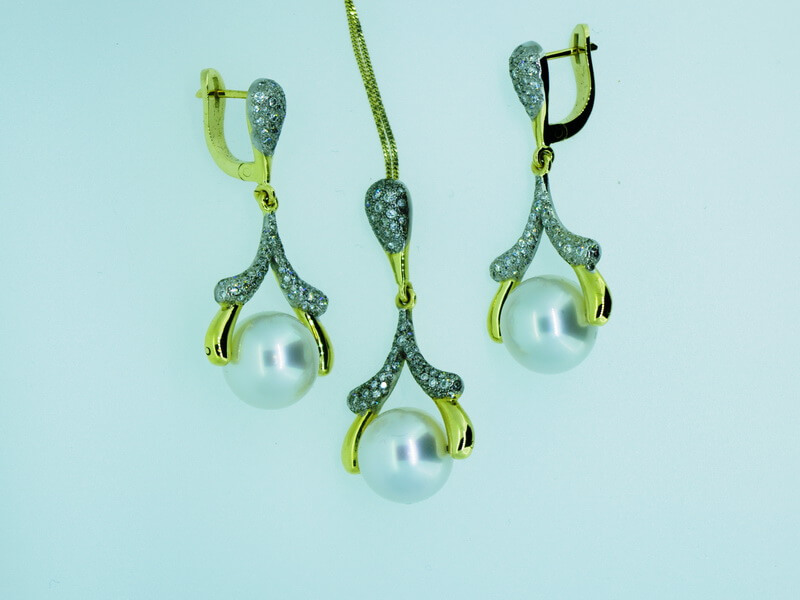 Moteriski auskarai su perlais, ranku darbo, is aukso, sidabro ir kitu tauriuju metalu.