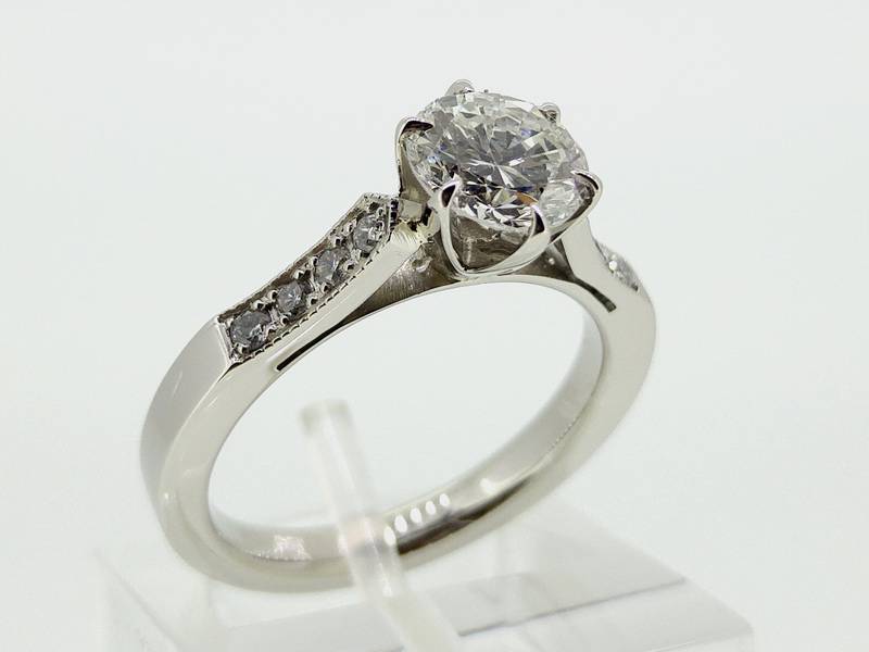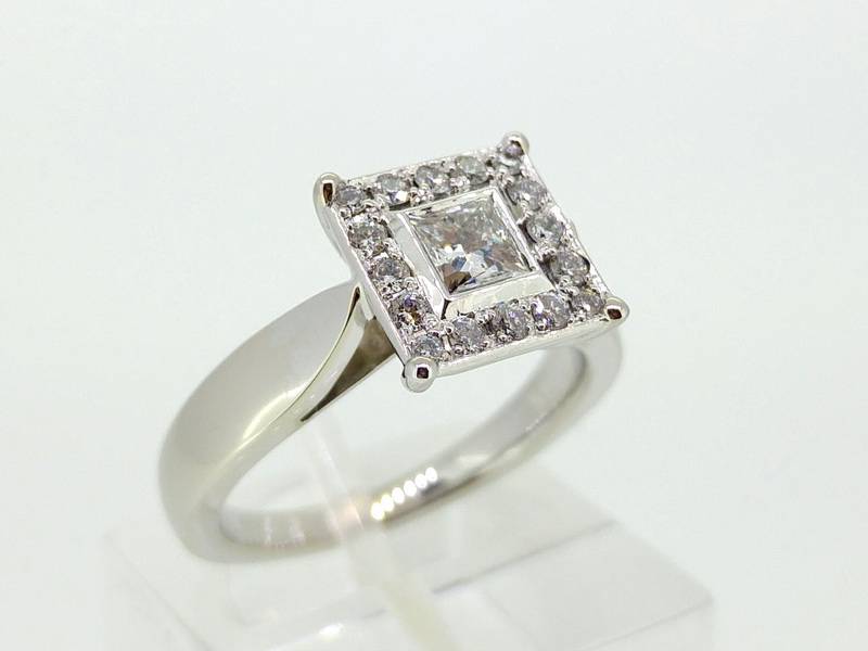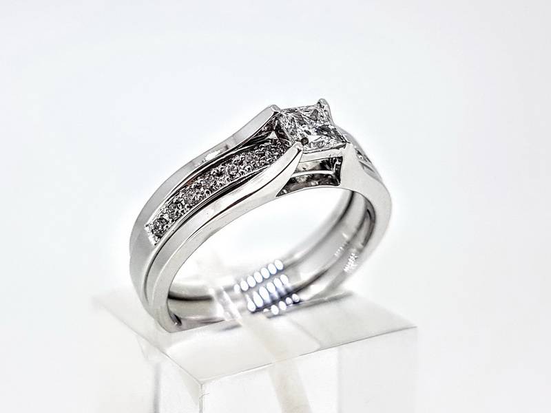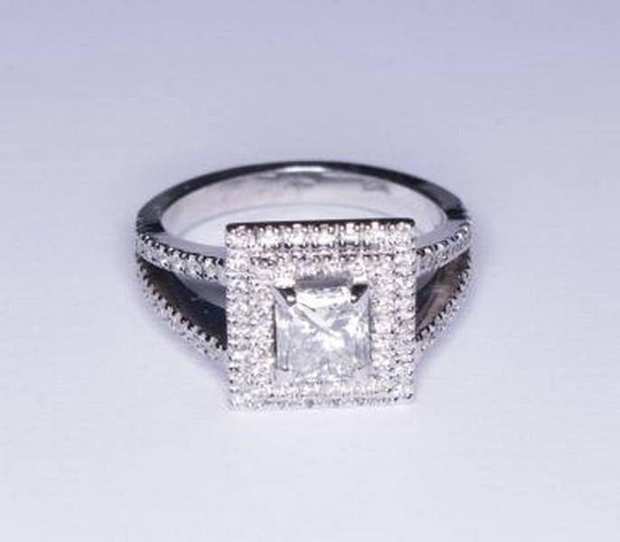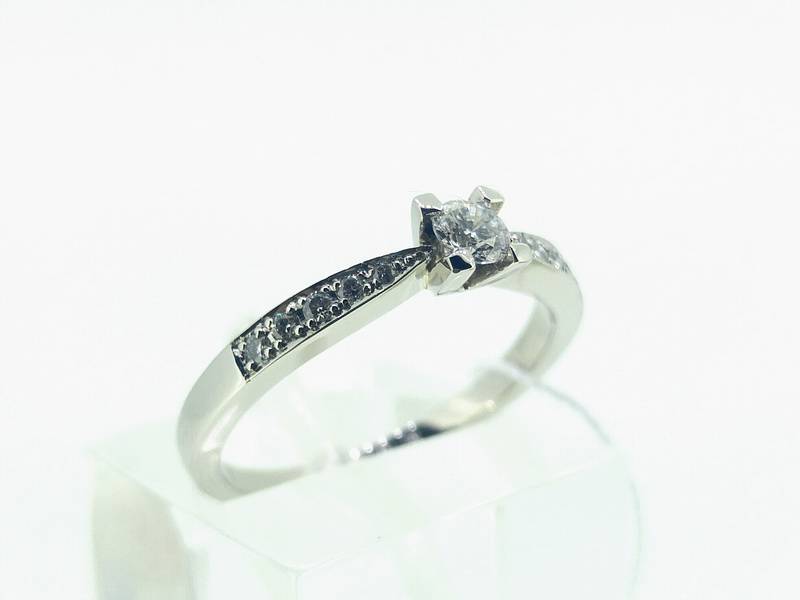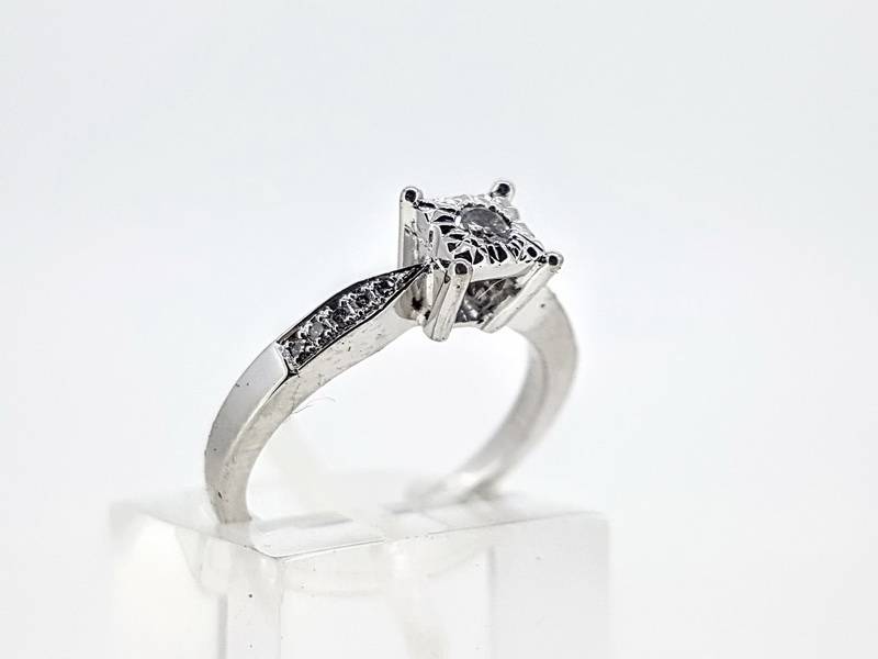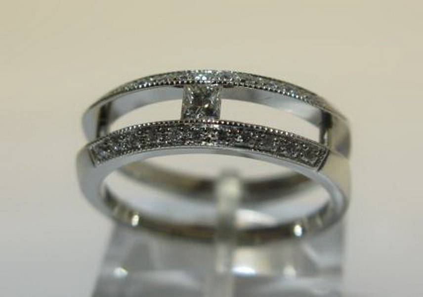 - Suzadetuviu ziedas Nr.33 (is balto aukso, su kvadratiniu deimantu „princese“ ir apvaliais briliantais)
