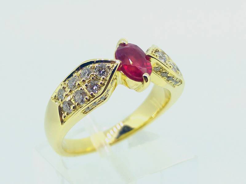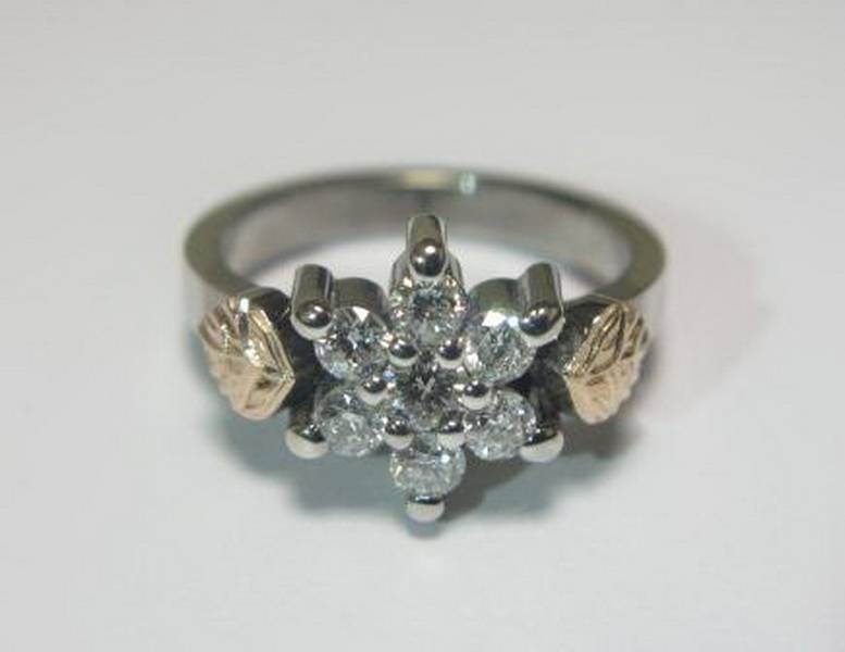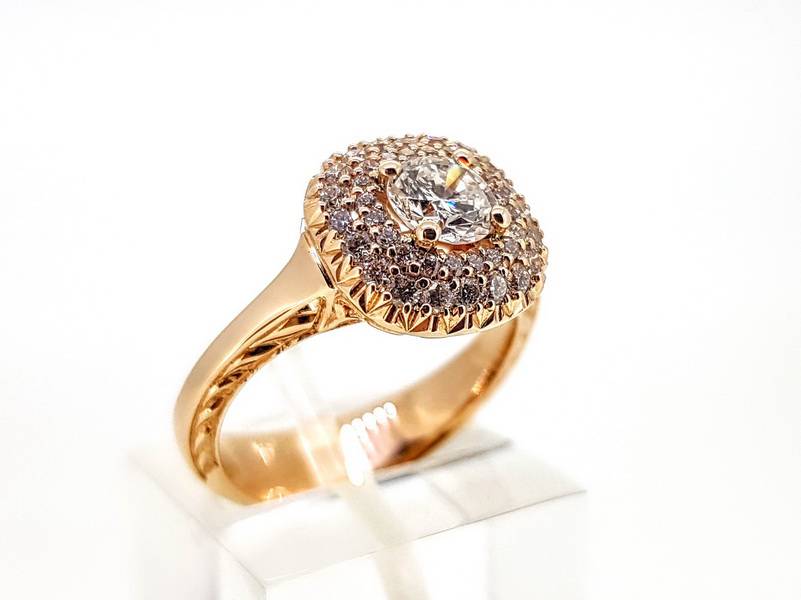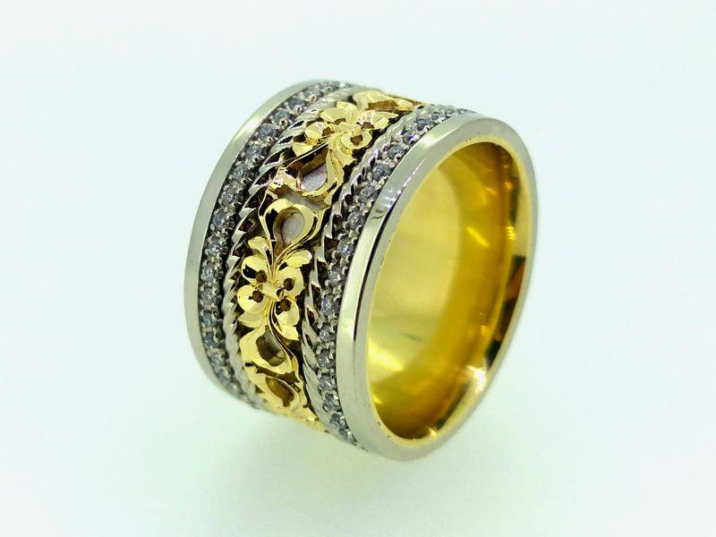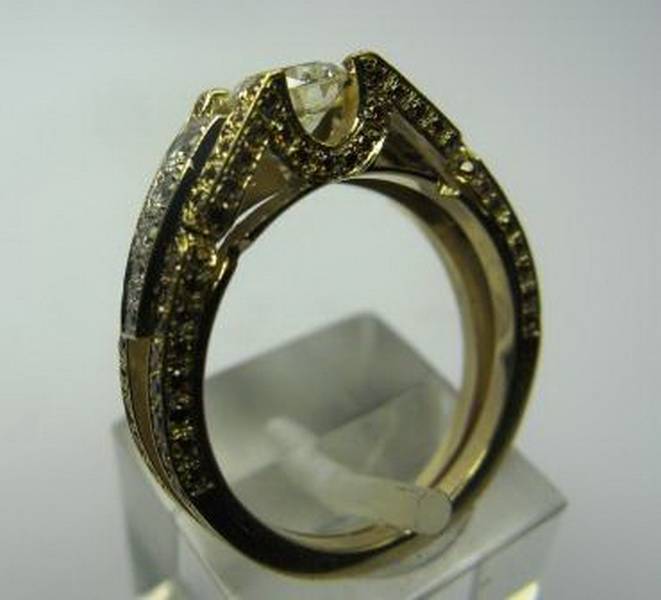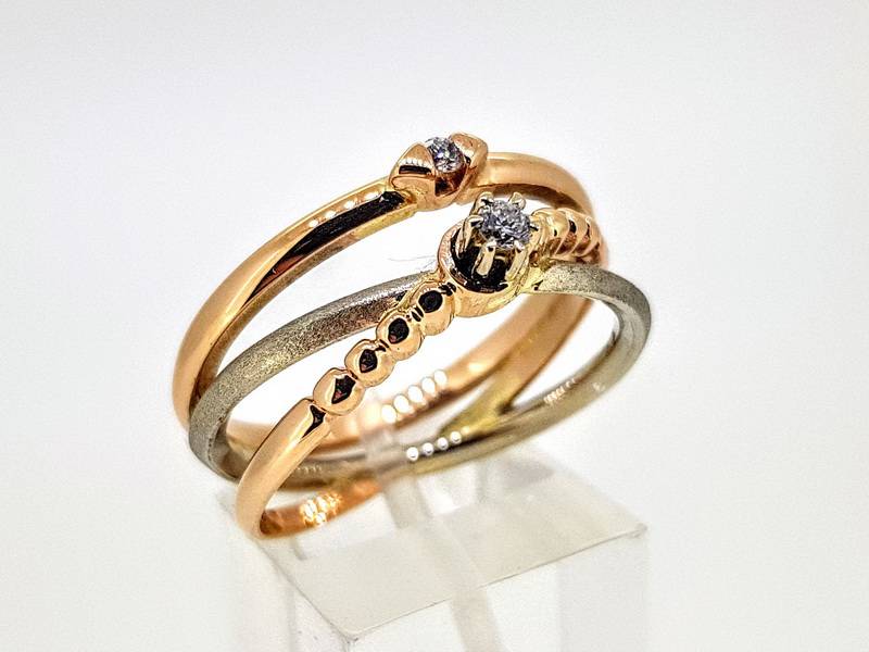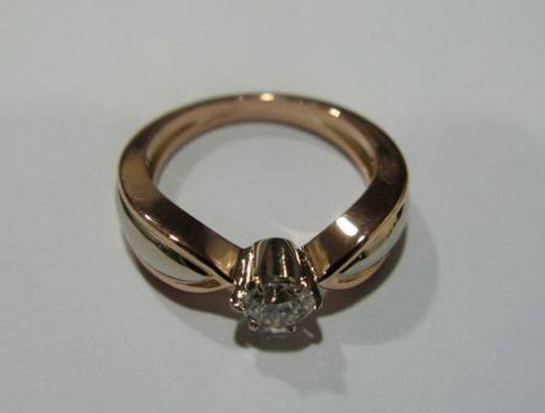 - Suzadetuviu ziedas Nr.98 (is geltono, raudono arba balto aukso, puostas baltais ir rusvais briliantais)