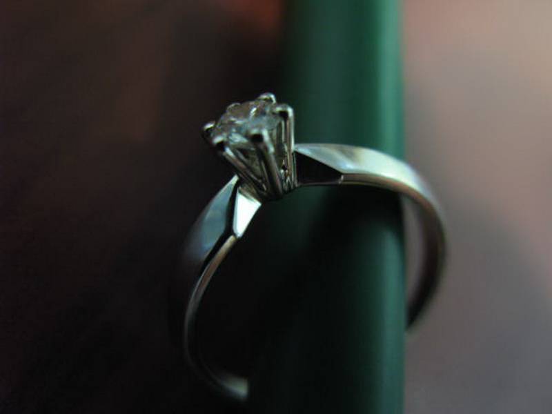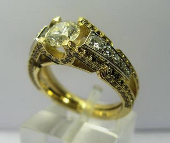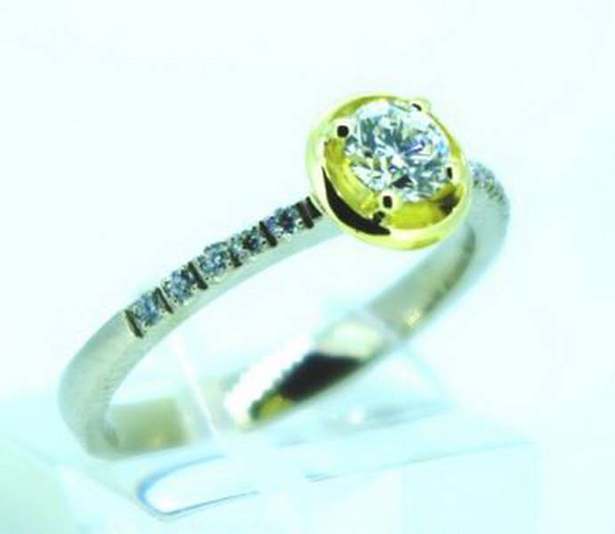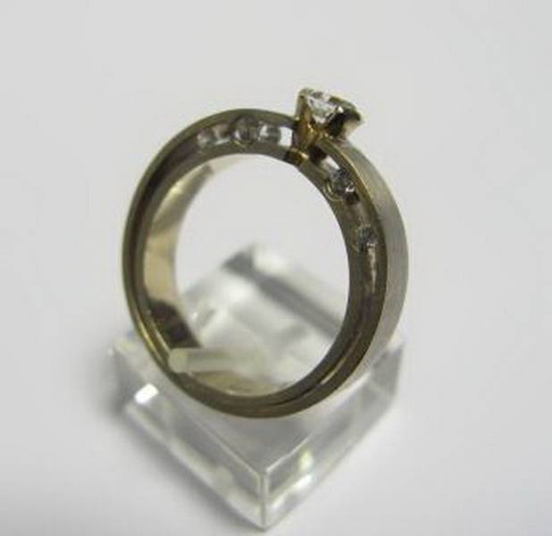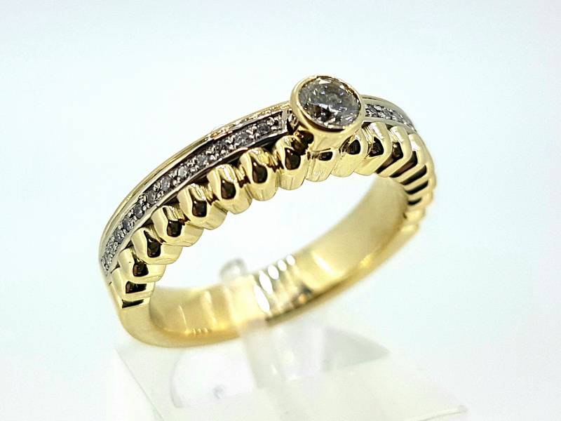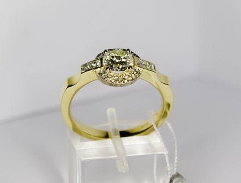- Suzadetuviu ziedas Nr.34 (is geltono aukso, su kvadratiniu deimantu „princese“ ir apvaliais briliantais)