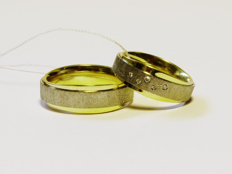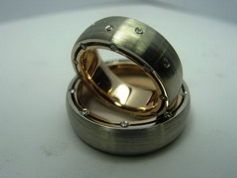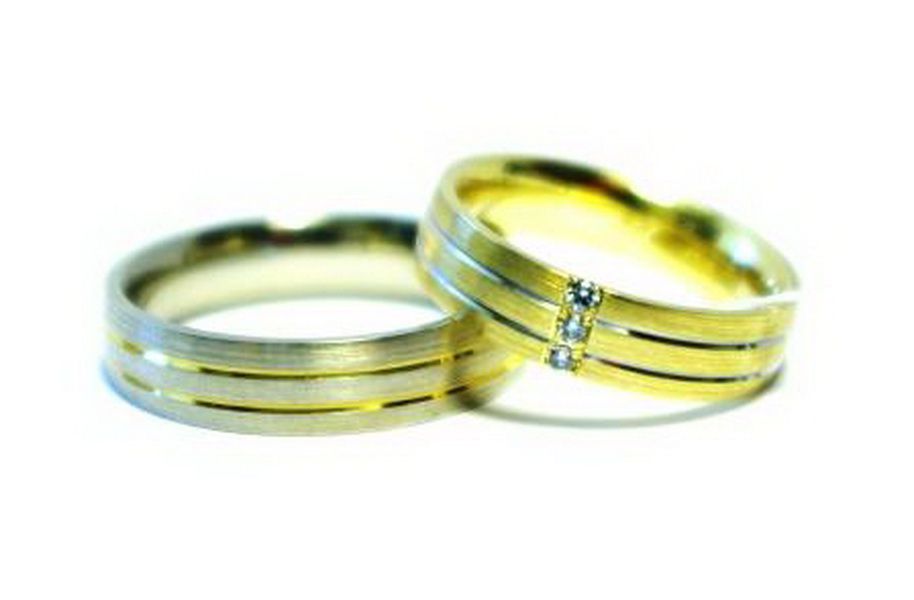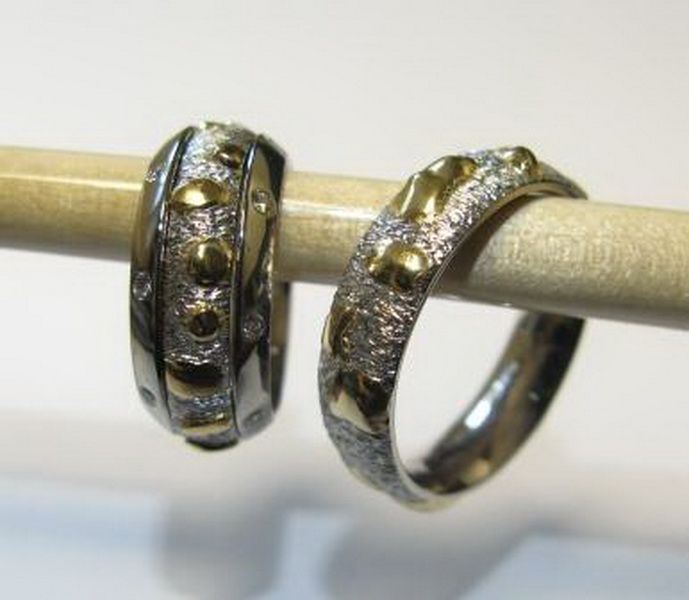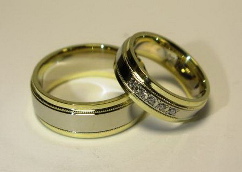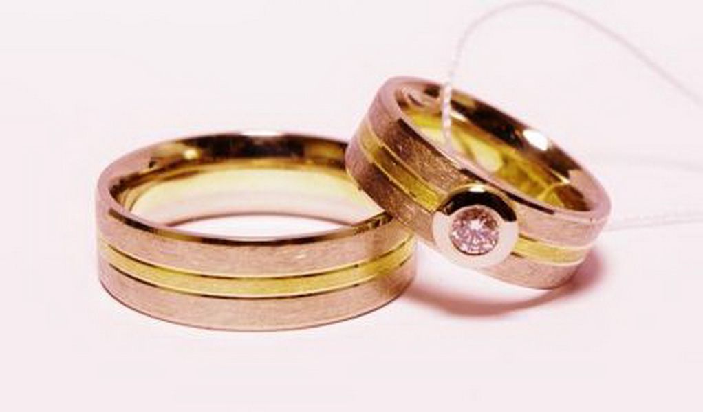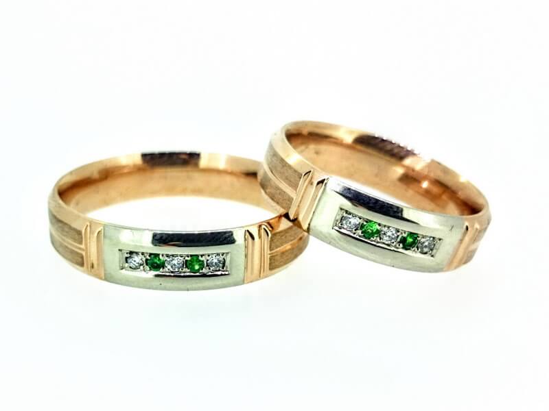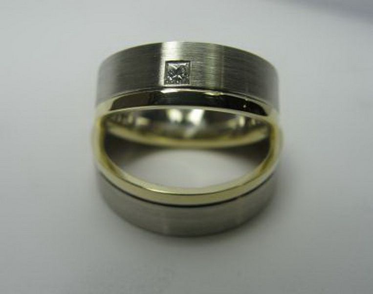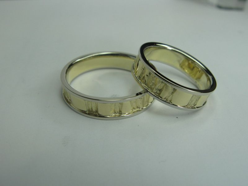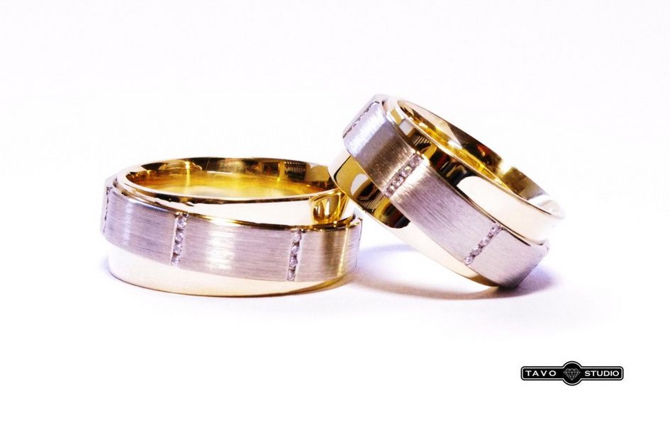 - Vestuviniai ziedai Nr.170 (is skirtingu spalvu aukso, puosti juodu ir baltu kvadratiniais deimantais)