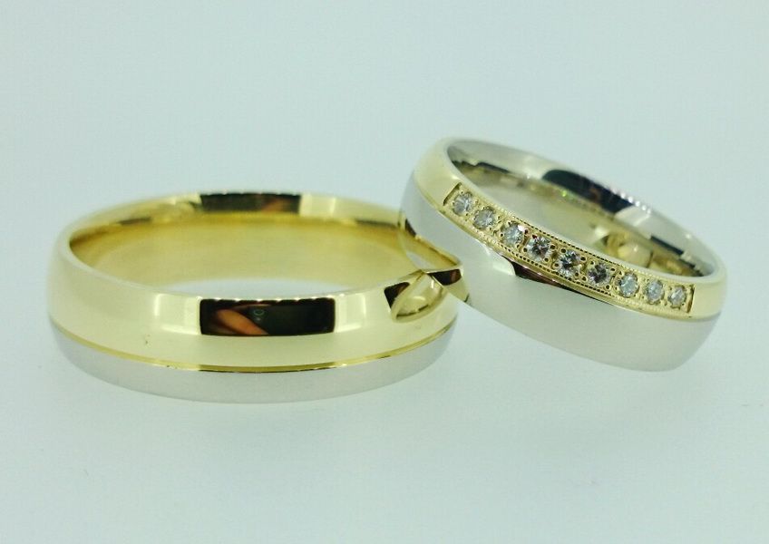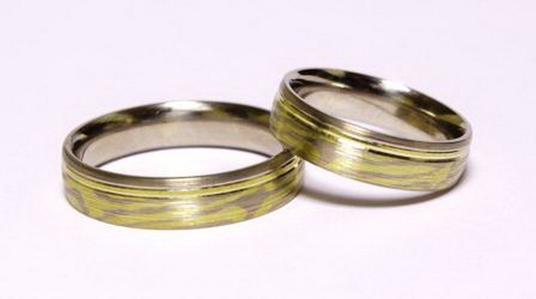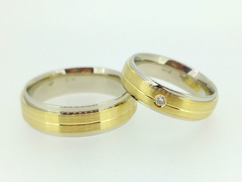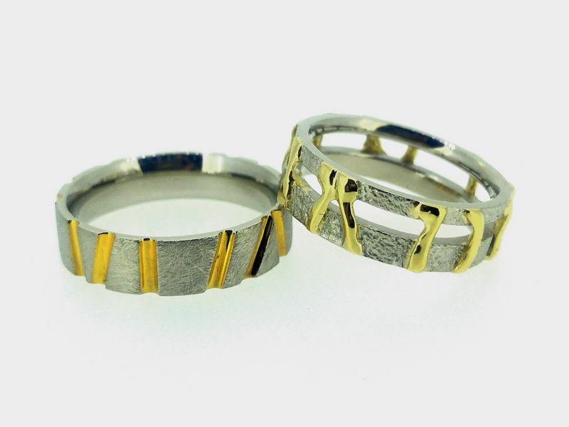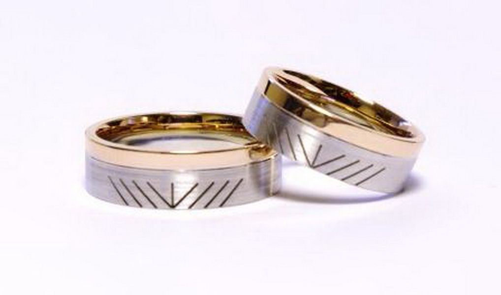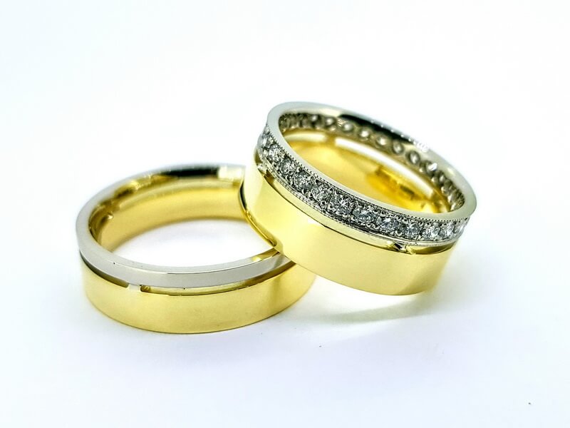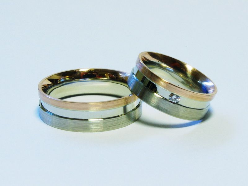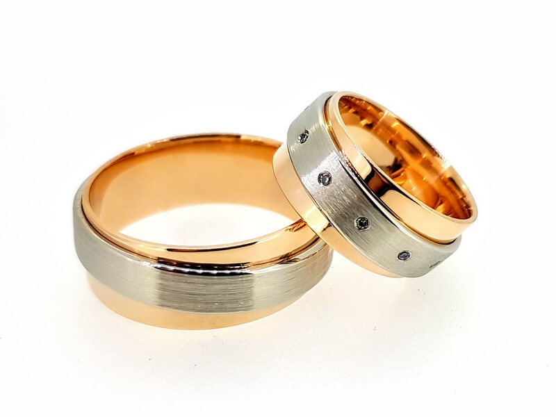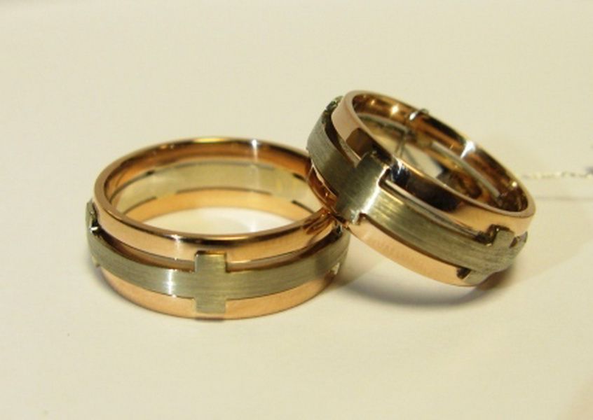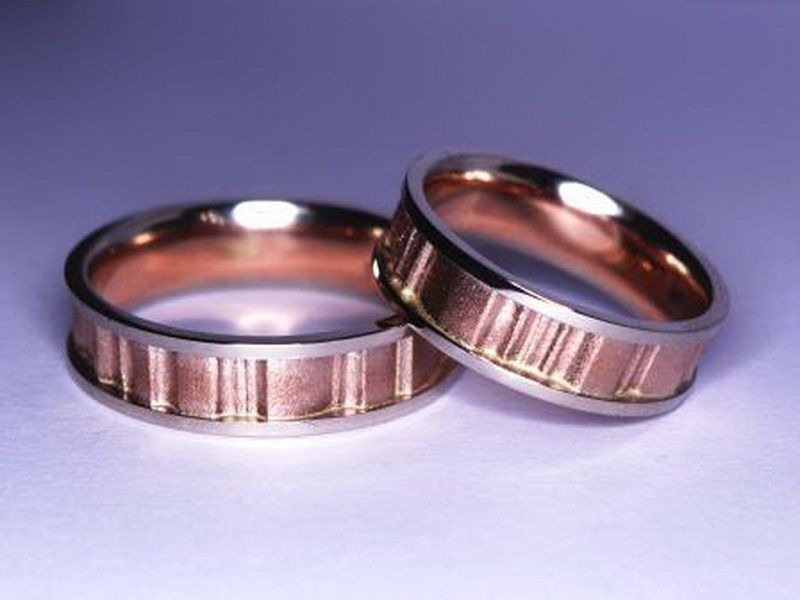 - Vestuviniai ziedai Nr.170 (is skirtingu spalvu aukso, puosti juodu ir baltu kvadratiniais deimantais)