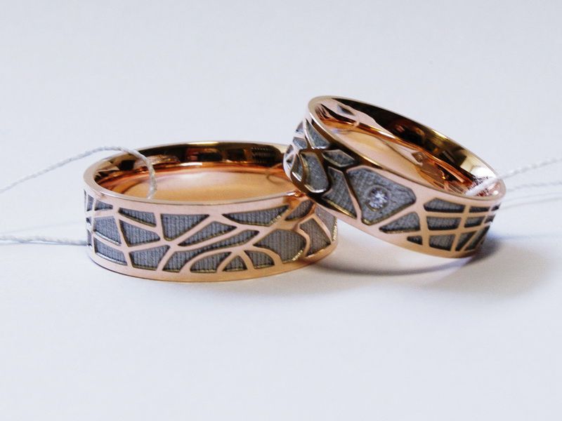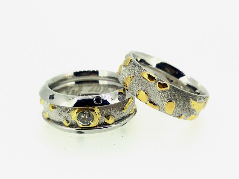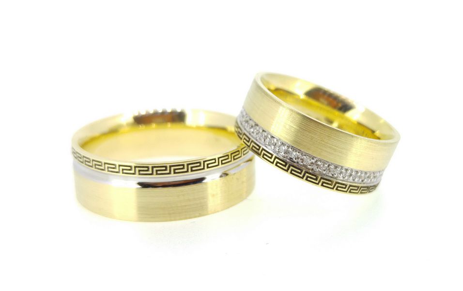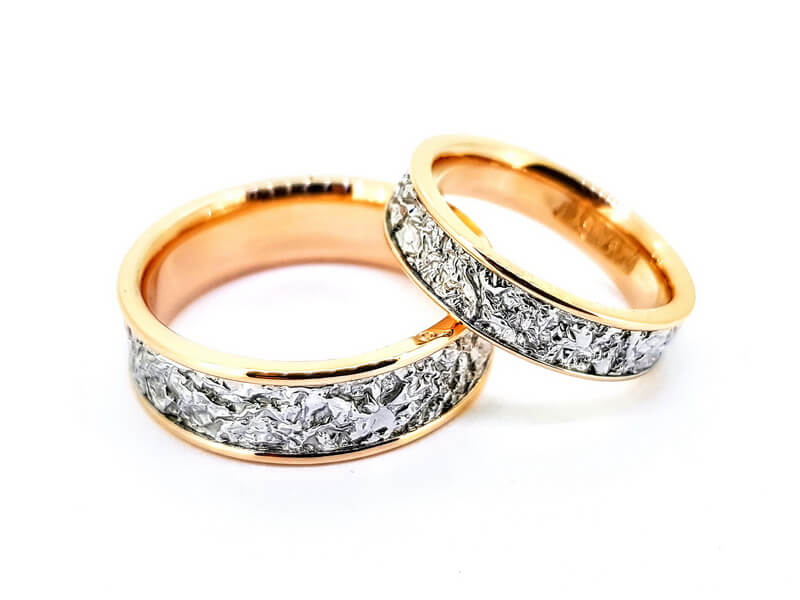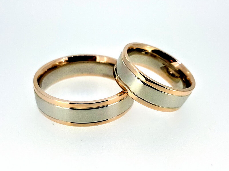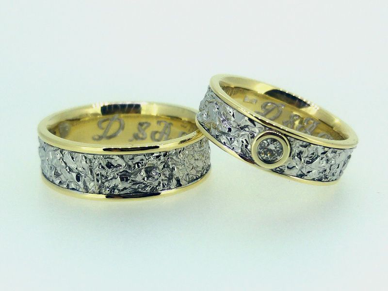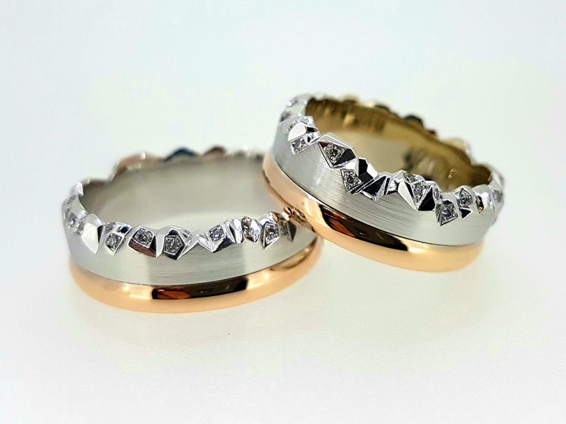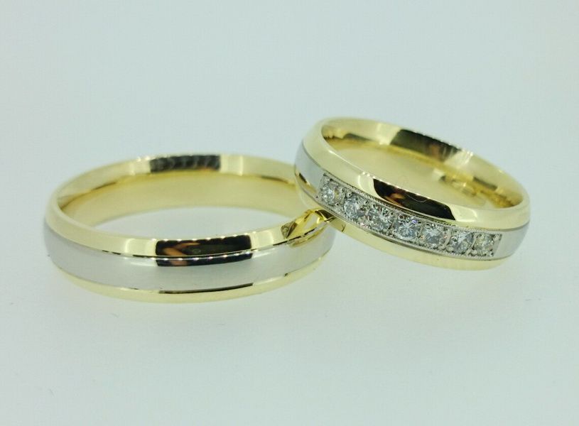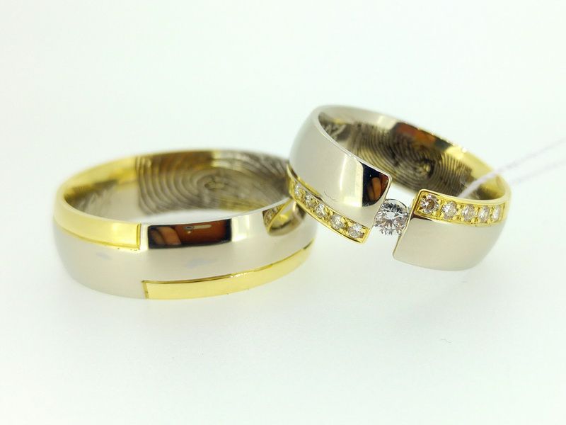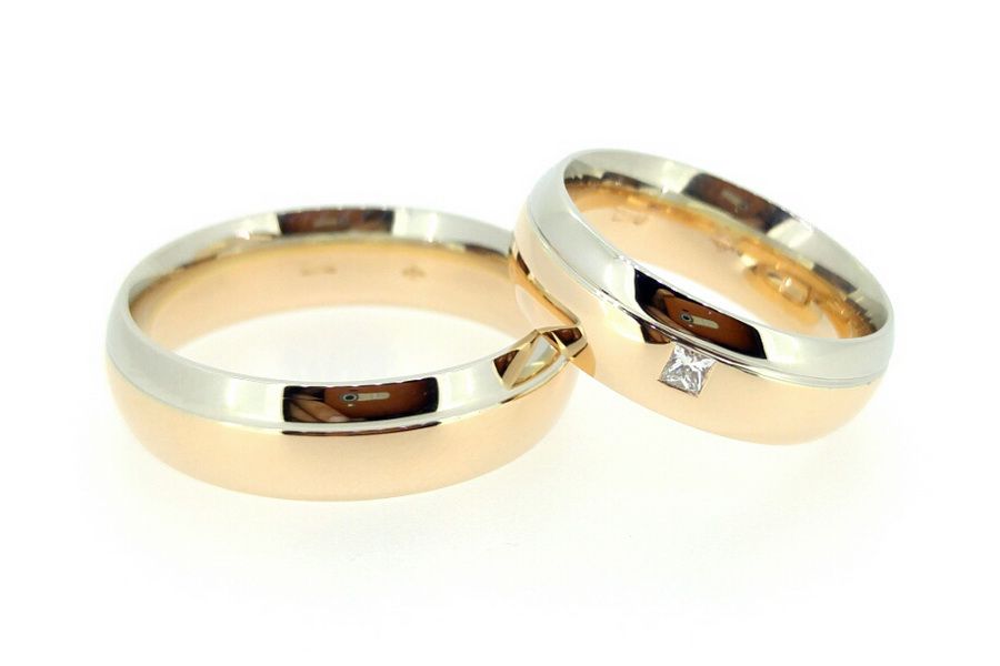 - Vestuviniai ziedai Nr.170 (is skirtingu spalvu aukso, puosti juodu ir baltu kvadratiniais deimantais)