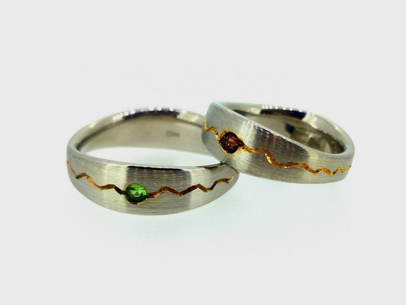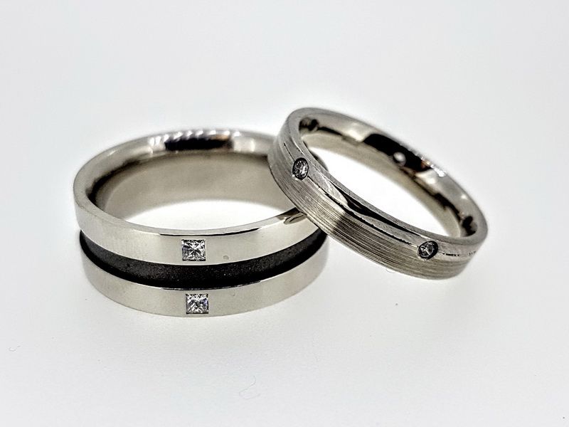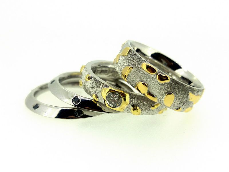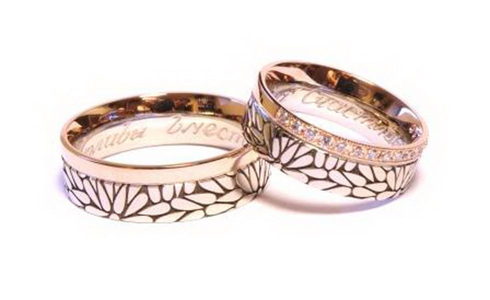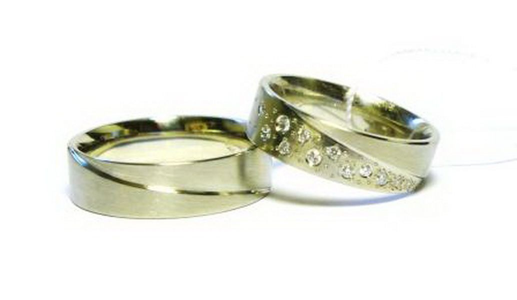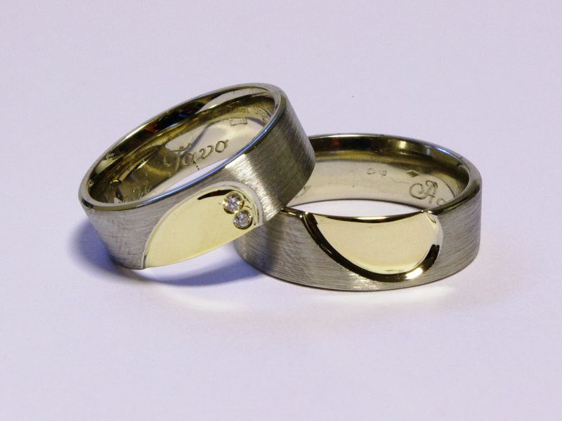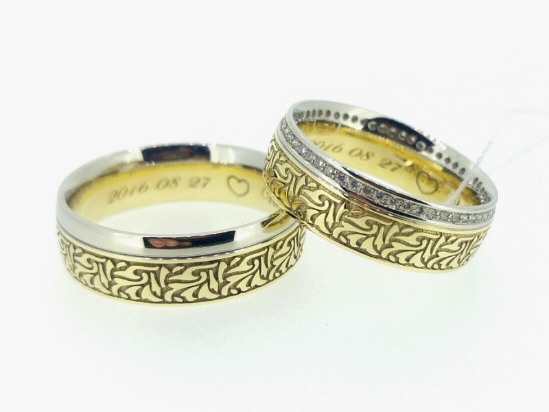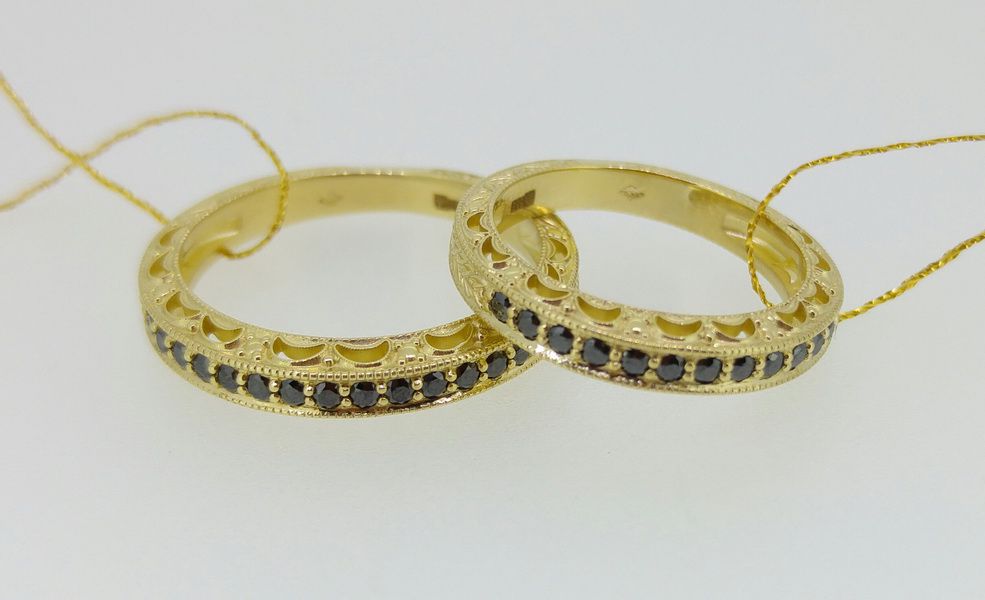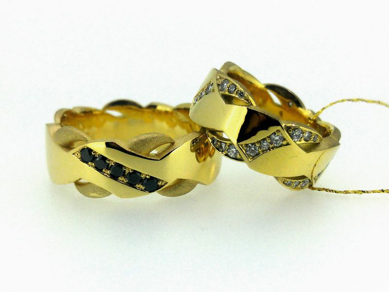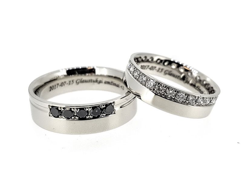 - Vestuviniai ziedai Nr.284 (is balto arba kitos spalvos aukso, puosti juodais ir baltais briliantais)