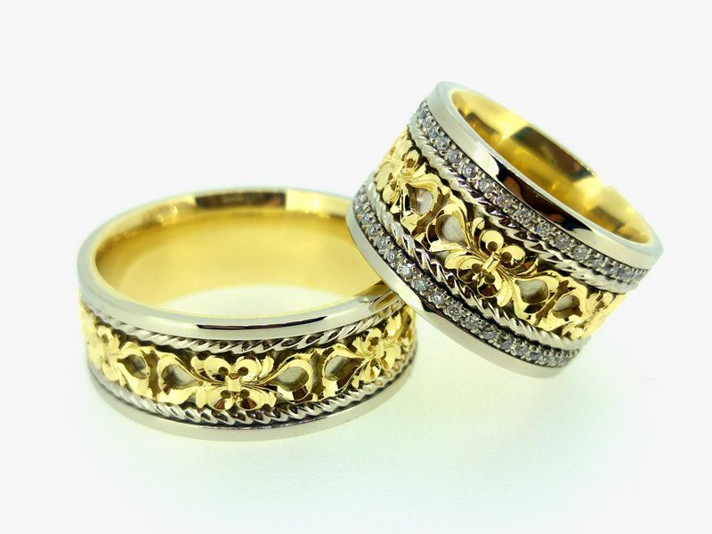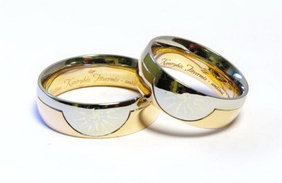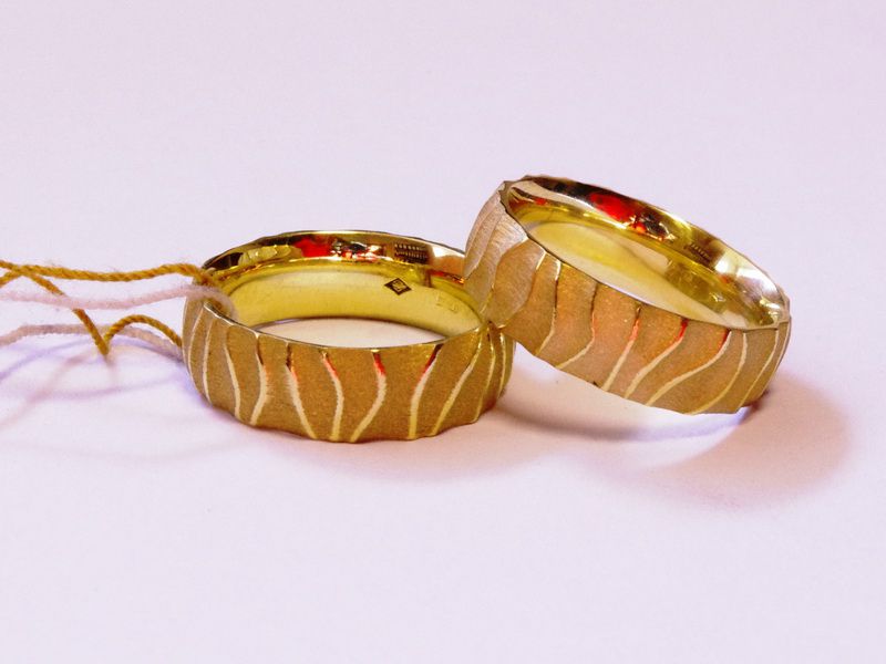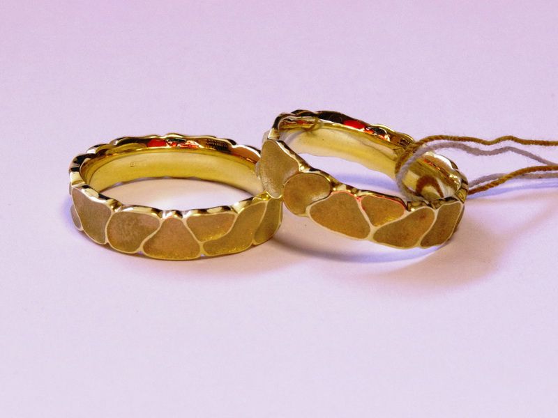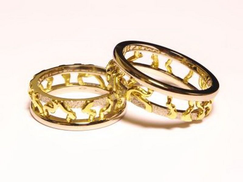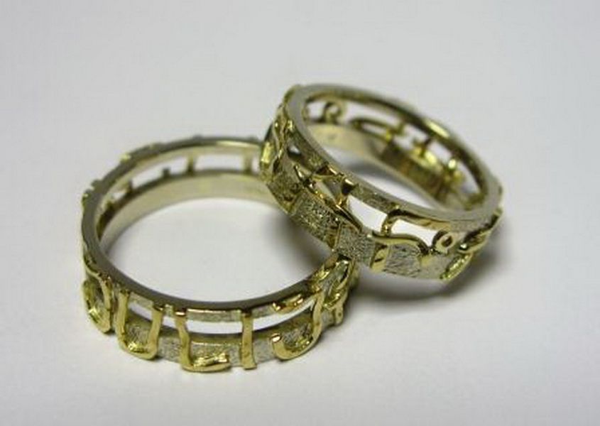 - Vestuviniai ziedai Nr.13 (is geltono, arba kitos spalvos aukso, su susijungianciu sirdies formos motyvu)