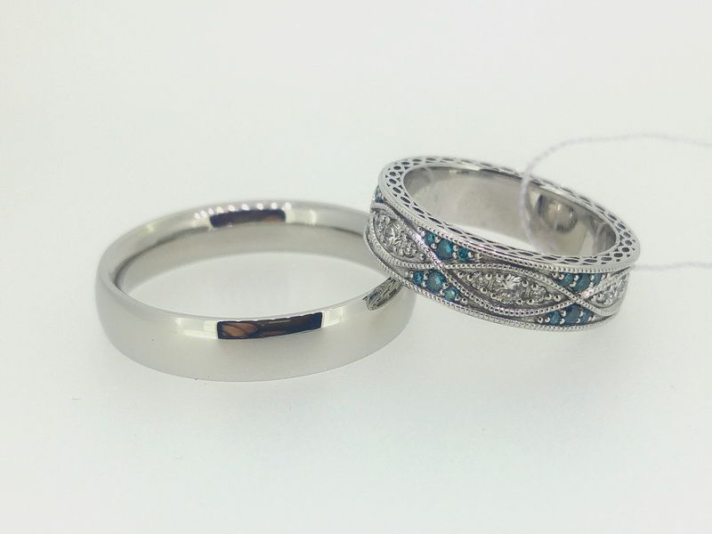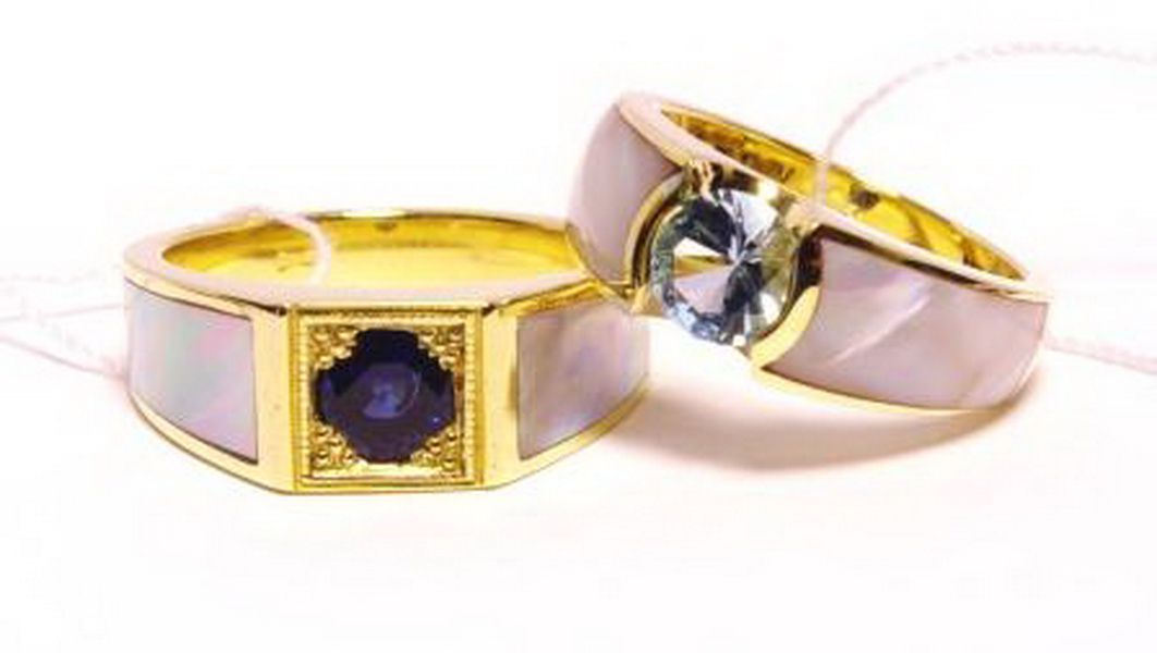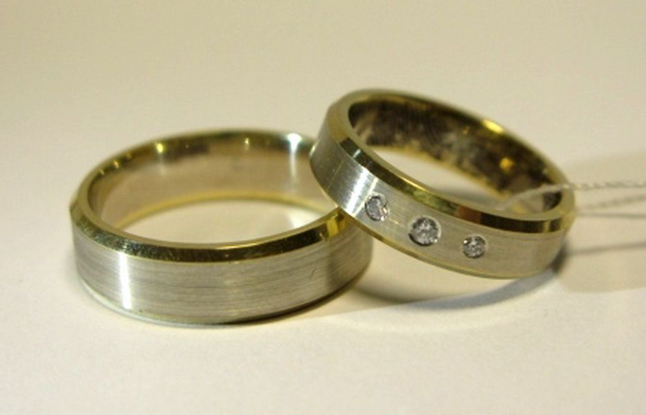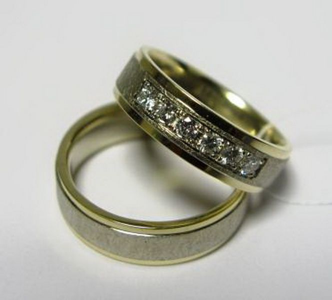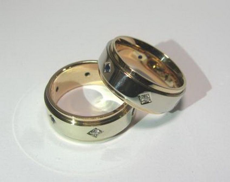 - Vestuviniai ziedai Nr.248 (is platinos ir aukso, mot.-inkrustuotas skaidriais ir melynais briliantais)